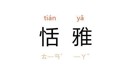 引《资治通鉴·宋孝武帝大明七年》:“吏部郎 江智渊 素恬雅,渐不会旨。”《明史·陆树声传》:“树声 端介恬雅,翛然物表,难进易退,通籍六十餘年,居官未及一纪。”清 姚鼐 《<恬庵遗稿>序》:“观察出其( 恬菴先生 )文,读之,清和恬雅,有越俗之韵,真吾乡前辈文也。”
