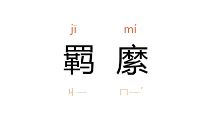 ⒈ 亦作“羁靡”。亦作“羇縻”。系联。束缚;控制。拘禁。指羁縻州。笼络;怀柔。亦作:羁靡羇縻。