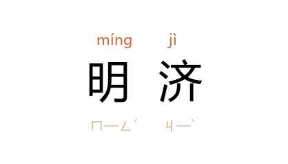 引晋 夏侯湛 《东方朔画赞》序:“夫其明济开豁,包含弘大,陵轢卿相,謿哂豪桀,笼罩靡前,跆籍贵势,出不休显,贱不忧戚,戏万乘若寮友,视儔列如草芥。”《世说新语·赏誉》“推此与君,同济艰不者也” 刘孝标 注引 南朝 宋文帝 《文章志》:“刘恢 字 道生,沛国 人。识局明济,有文武才。”《北史·李奖传》:“奬 前后所歷,皆以明济著称。”