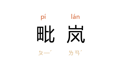 引唐 玄应 《一切经音义》卷一:“毗嵐……或作毗蓝婆,或作鞞嵐,或云吠蓝,或作随蓝,或言旋蓝,皆是梵之楚夏耳,此译云迅猛风也。”清 钱谦益 《大梁周氏金陵寿宴序》:“龙汉之火,不将为萤爝乎?金藏之水,不将为涓滴乎?毗嵐之风,不将为调刁乎?”叶玉森 《印度故宫词》:“神牛罢吼灵狮睡,毘嵐扑地声何厉。”