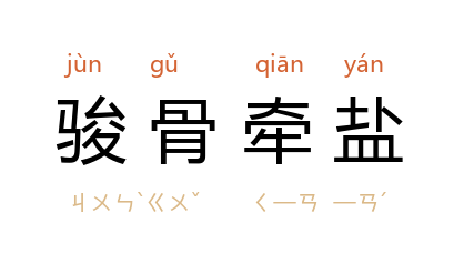 后以“骏骨牵盐”谓才华遭到抑制。 清 袁枚 《与汪可舟书》:“悠悠人世,本少知音,骏骨牵盐,玄文覆酱……丈人之所以没没人间,含光隐耀者,身列布衣,未遇真知风雅人故也。”
