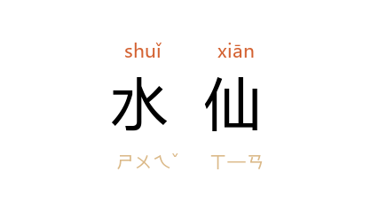 ⒈ 亦作“水僊”。传说中的水中神仙。谓水葬者。称遍游江湖乐而忘返之人。琴曲名。多年生草本植物。地下鳞茎作卵圆形,叶子条形,伞形花序,花白色,中心黄色,有香味。供观赏,鳞茎和花可入药。亦指此种植物的花。