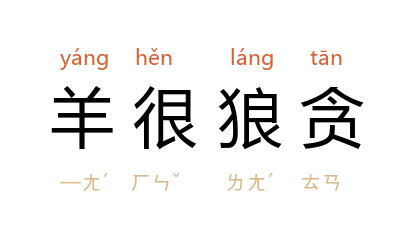 ⒈ 喻狠毒贪婪。语出《史记·项羽本纪》:“因下令军中曰:'猛如虎,很如羊,贪如狼,强不可使者,皆斩之。'”