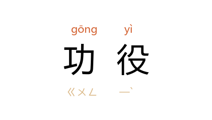 引《东观汉记·锺离意传》:“功作既毕,为解土祝曰:‘兴功役者令,百姓无事,如有祸祟,令有当之。’”晋 葛洪 《抱朴子·崇教》:“民力竭於功役,储蓄縻於不急。起土山以準 嵩 霍,决渠水以象九河。”宋 苏辙 《再乞责降李伟札子》:“差官吏兵夫,收买梢芟,开掘河槽,修筑马头锯牙,功役至大。于今观之,皆是虚费。”明 何良俊 《四友斋丛说·史二》:“边墙极坚,且功役亦不甚费。”