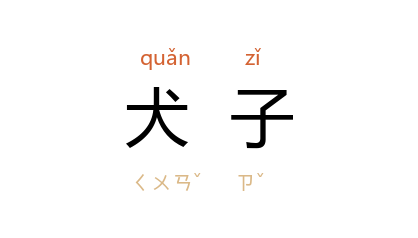 清 李渔 《蜃中楼·婚诺》:“只得一个犬子,如今十六岁了。”