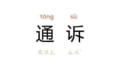 引《后汉书·李固传》:“河内 赵承 等数十人亦要鈇鑕诣闕通诉,太后明之,乃赦焉。”《魏书·高崇传》:“如二使阿曲,有不尽理,听罪家诣门下通诉,别加按检。”钱锺书 《围城》六:“不过, 中国 不像 英国,没有基督教的上帝来听下界通诉。”