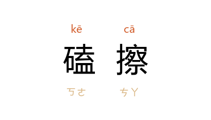 引元·高文秀《黑旋风·第四折》:「声未绝口,早磕擦的一板斧一个,劈下头来。」元·武汉臣《玉壶春·第三折》:「将一朵并头莲生磕擦两分开,刀割断合欢带。」