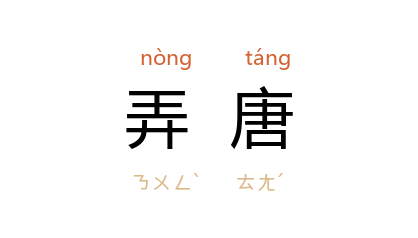 引明 祝允明 《前闻记·弄》:“今人呼屋下小巷为弄……俗又呼弄唐,唐亦路也。”清 梁绍壬 《两般秋雨盦随笔·衖堂》:“今堂屋边小径,俗呼衖堂,应是弄唐之讹。宫中路曰弄,庙中路曰唐,字盖本此。”