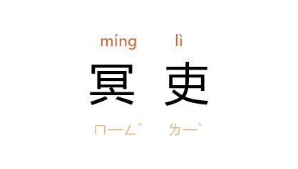 引宋 苏轼 《仇池笔记·陈昱被冥吏误追》:“有人自孔掷一物,至地化为人,乃其亡姊也。携其手,自孔中出。曰:‘冥吏追汝,使我先。’见吏在旁,昏黑如夜。”明 沉德符 《野获编·鬼怪·穆象元判冥》:“少时为诸生,被召为冥吏,每以夜分入幽府决事。”