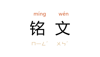 ⒈ 刻写在金石等物上的文辞。具有称颂、警戒等性质,多用韵语。