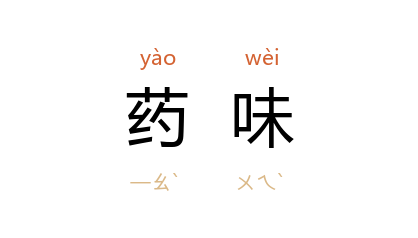 ⒉ 药物的气味或味道,即寒、热、温、凉四气和酸、苦、甘、辛、咸五味。
