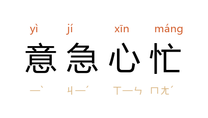 引《孤本元明杂剧·双林坐化·楔子》:「不由我意急心忙出洞天,你道是地惨天昏沧海干。」《封神演义·第二回》:「崇应彪见父亲败走,意急心忙,慌了手脚。」