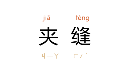⒈ 在两个靠近物体中间的狭窄空隙。