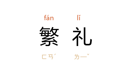 引《吕氏春秋·义赏》:“繁礼之君,不足於文。”《史记·礼书》:“孝文 好道家之学,以为繁礼饰貌,无益於治。”《文选·何晏<景福殿赋>》:“絶流遁之繁礼,反民情於太素。”李善 注:“礼烦即乱。”