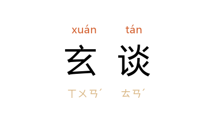 ⒈ 指汉·魏以来以老·庄之道和《周易》为依据而辨析名理的谈论。泛指脱离实际的空论。佛教语。对佛教义理的阐述。如《华严玄谈》、《十玄谈》。犹预言。玄,通“悬”。