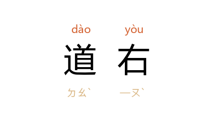 引《孔丛子·问军礼》:“主车止於中门之外,外门之内,庙主居於道左,社主居於道右,其所经名山大川,皆祭告焉。”元 曹元用 《董子祠堂记》:“唐 宋 碑刻犹存,县北门道右,故有 董子祠。”