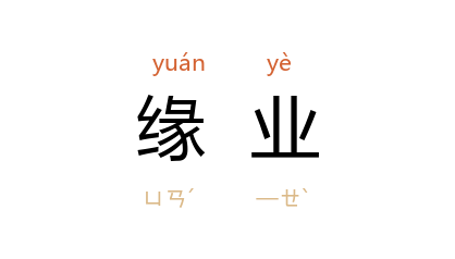⒈ 佛教语。也称业缘。谓善业为招乐果的因缘,恶业为招苦果的因缘,一切众生皆由业缘而生。后多指男女之间因缘。