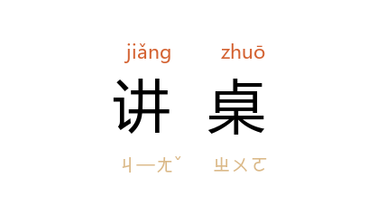 ⒈ 指大会发言用桌。也指教室讲课用桌。