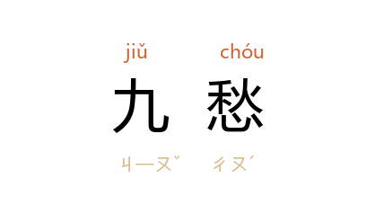 引南朝 梁简文帝 《喜疾瘳》诗:“逍遥临四注,兼持散九愁。”南朝 梁元帝 《登隄望水》诗:“怀山殊未已,徒然劳九愁。”唐 袁朗 《秋夜独坐》诗:“新秋百虑净,独夜九愁深。”唐 张泌 《秋晚过洞庭》诗:“莫把覊魂弔 湘 魄,九愁凝絶鏁烟嵐。”