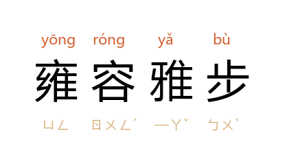 引《魏书·世祖纪上》:“或雍容雅步,三命而后至;或栖栖遑遑,负鼎而自达。虽徇尚不同,济时一也。”刘大白 《龟》诗:“你雍容雅步,好象个老官僚阔乡绅。”
