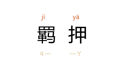 ⒈ 拘留;拘押。为防止嫌疑犯逃走或消灭罪证,依法将未判决的人犯关押在规定的监禁场所,限制其人身自由的一种强制措施。
