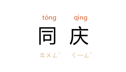 引《文选·陆机·辩亡论下》:「及其危也,则兆庶与之共患,安与众同庆,则其危不可得也。」唐·韩愈〈皇帝即位降赦贺观察使状〉:「渥恩普霑,远近同庆。」