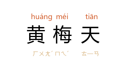⒈ 梅雨季节。江南每年农历四、五月间雨水极多,天气多变化,此时梅子正当黄熟,故称为「黄梅天」。