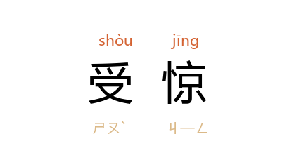 引《三国演义·第二五回》:「使二嫂受惊,某之罪也。」《初刻拍案惊奇·卷一七》:「师父受惊多次,不敢进大娘的门了。」