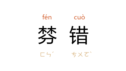 引宋 苏洵 《送陆权叔提举茶税》诗:“名家乱如髮,棼错费寻理。”明 李东阳 《明故光禄大夫徐公墓志铭》:“处官恭慎,事值棼错,从容应之,皆中理。”《明史·赵璜传》:“璜 有干局,多智虑。事棼错,他人相顾愕眙, 璜 立办。”