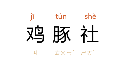 引宋 陆游 《思归示儿辈》诗:“兴发鸡豚社,心阑翰墨场。”元 汪元亨 《雁儿落过得胜会·归隐》曲:“耻随鸳鷺班,笑结鸡豚社。”