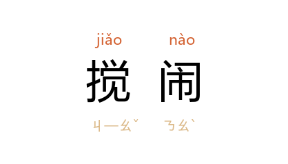 引元 杨梓 《不伏老》第一折:“如有搅闹功臣筵宴者,着下官先斩后奏。”萧红 《生死场》十四:“若不是小 日本 子搅闹乡村,自家的母猪不是早生了小猪吗?”