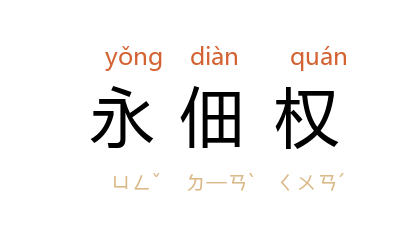 ⒈ 一种利用土地的物权。指一方支付租金,而于他人土地上为永久耕作或牧畜的权利。