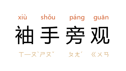 ⒈ 把手放在袖子里,在一旁观看。形容置身事外,不予过问。也作「旁观袖手」、「束手旁观」、「缩手旁观」。