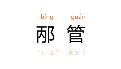 ⒈ 东汉 学者 邴原 和 管宁 的并称。 邴 管 少相友,游学异地,俱以操尚称,曾避黄巾起义越海羁旅 辽东。二人皆清虚廉白,服膺六艺,名重当时。见《三国志·魏志·邴管传》。
