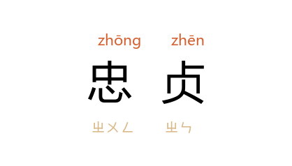 《国语·晋语二》:“昔君问臣事君於我,我对以忠贞,君曰:‘何谓也?’我对曰:‘可以利公室,力有所能,无不为,忠也;葬死者,养生者,死人復生不悔,生人不媿,贞也。’”