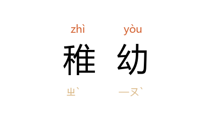 引宋 苏轼 《种茶》诗:“天公所遗弃,百岁仍穉幼。”明 沉德符 《野获编·鬼怪·草木之妖》:“今上丙戌、丁亥间,京师明智草场火发,薪芻如山,一夕尽为煨烬。次晨喧传有异,余稚幼随众往观。”清 吴苑 《到家》诗:“薄宦十餘年,懽爱类穉幼。”