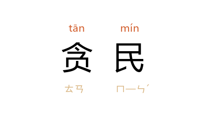引《左传·襄公九年》:“国无滞积,亦无困人;公无禁利,亦无贪民。”《管子·大匡》:“朝之争禄相刺裚领而刎颈者不絶。 鲍叔 谓 管仲 曰:‘国死者众矣,毋乃害乎!’ 管仲 曰:‘安得已然,此皆其贪民也。’”