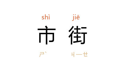 引唐 白居易 《新昌新居书事四十韵》:“市街尘不到,宫树影相连。”宋 朱熹 《肩舆历湖桑堰抵暮乃归》诗:“野店茶香迎倦客,市街犬熟傍行人。”