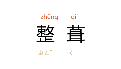 引南朝 梁 沉约 《善馆碑》:“止欲渐去喧嚣,稍离尘杂,於是既加整葺,营建堂宇。”宋 吴曾 《能改斋漫录·记事二》:“章申公 子厚,与其叔 安仁 令书曰:‘弊政之后,谅烦整葺。’”明 冯梦龙 《挂枝儿·花开》:“预把牡丹臺芍药整葺完成。”