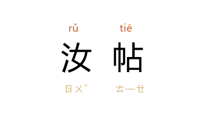 ⒈ 法帖名。宋大观中,汝州守王寀采择潭、绛、泉帖中之最优者,荟萃成文,分为十二卷,刻石置于汝州望嵩楼中。明末兵乱,楼焚碑残。清顺治七年(1650年)巡道范承祖重新修葺,并加诗跋二刻,共十四刻,置于州署西园古轩壁中。道光十八年(1838年)州守白明义见所存文漫漶不复识,自洛阳贴得汝帖原拓一部,重摹诸石,仍藏左轩壁中。此帖计有金石文八种,秦、汉、三国字体五种,六朝帝王书三十引,魏晋九人书以及王羲之十帖、南唐十臣、唐三朝帝后四书和欧阳询、虞世南、褚遂良、颜真卿、柳公权、贺知章、李后主、吴越王俶等七十余家书法手迹,字数虽不甚多,但真草隶篆无所不包。向为书法爱好者所珍视。现存河南省临汝县文化馆。