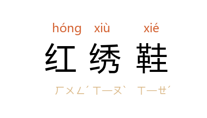 引《聊斋志异·卷二·凤阳士人》:「又是想他,又是恨他,手拿著红绣鞋儿。」
