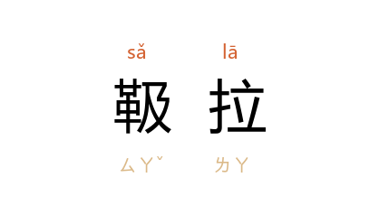 引《儿女英雄传·第四回》:「脚下包脚面的鱼白色袜子,一双大掖邑鱼鳞繖鞋,可是靸拉著。」