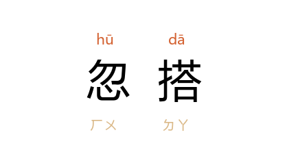 引杨朔 《三千里江山》第三段:“姚长庚 的心只觉一个劲忽搭忽搭蹦,两条腿也不好使唤,忽忽悠悠的,到桥北头坐下去,不能动了。”柳溪 《爬在旗杆上的人》:“板门又忽搭一下开了,进来了一个怒气冲冲的人。”