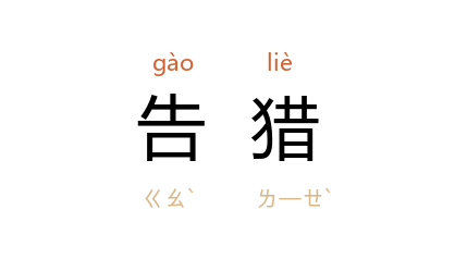 引《韩诗外传》卷五:“秦 之时,非礼义、弃《诗》《书》、略古昔,大灭圣道,专为苟妄,以贪利为俗,以告猎为化,而天下大乱。”许维遹 集释:“闻一多 先生云:‘《集韵》擸与擖同。擖有猎揭二音。音揭者则与訐同音。告猎,即告擸(擖),亦即告訐也。’案:闻 説是也,‘訐’‘猎’音近,故义亦近。”