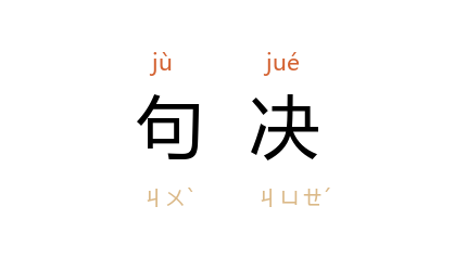 ⒉ 旧时执行死刑的司法程序之一。清制,各地判处死刑的案件,须申报刑部转奏皇帝决定,凡经皇帝朱笔画钩者,即照原拟罪名处决,谓之句决。
