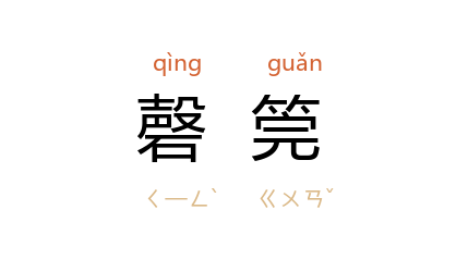 引《诗·周颂·执竞》:“鐘鼓喤喤,磬筦将将。”陆德明 释文:“筦,音管,本亦作管,同。”《汉书·礼乐志》引作“磬管鏘鏘”。 《荀子·乐论》:“饰以羽旄,从以磬管。”