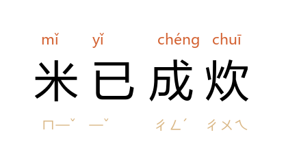 例如:「他们现在都米已成炊,只好接受这个事实。」