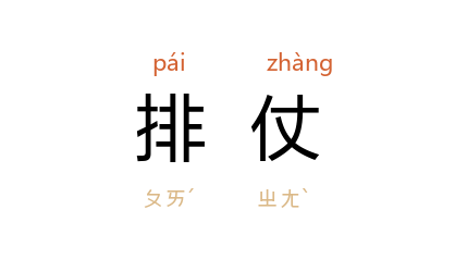 引唐 王建 《赠胡泟将军》诗:“半夜进儺当玉殿,未明排仗到铜壶。”宋 陆游 《夜且半梦从大驾亲征》诗:“筑城絶塞进新图,排仗行宫宣大赦。”