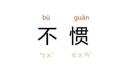 引《红楼梦·第四四回》:「他坐不惯首席,坐在上头,横不是,竖不是的,酒也不肯吃。」《文明小史·第四二回》:「我家里只有这个样子,你住得不惯,你就回到外国去。」