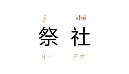 引《书·泰誓上》“宜于冢土” 孔 传:“祭社曰宜。”汉 董仲舒 《春秋繁露·止雨》:“祭社,击鼓三日而祝。”郭沫若 《奴隶制时代》二:“它如观黍、祈年、祭社、求晴雨等……都成为王者所必须经常亲自举行的大事。”